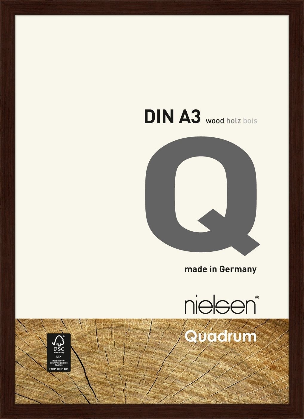 De Nielsen Quadrum Wenge fotolijst met hangers straalt met zijn klassieke profiel eenvoudige elegantie uit zonder saai te lijken. De lijsten zijn FSC® -gecertificeerd hout en komen dus uit een duurzaam beheerde bosbouw die voldoet aan de criteria van Forst Stewardship Council. Door de relatief grote vouwdiepte is de fotolijst zeer geschikt voor gelamineerde posters.
