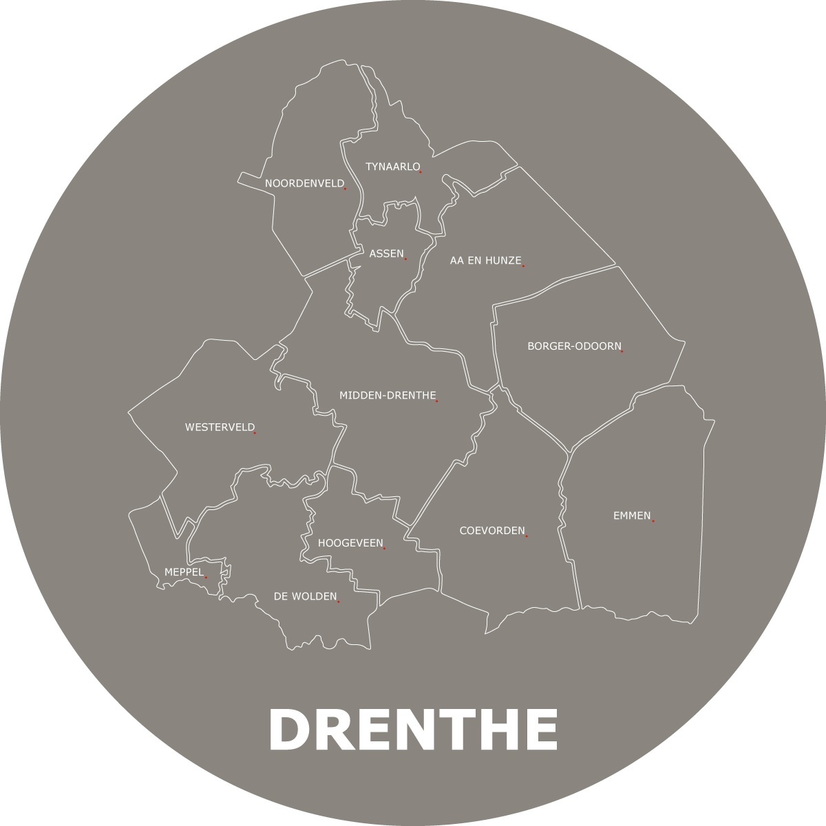 Wil jij jouw favoriete provincie als kunstwerk aan de muur? Dan is deze muurcirkel de perfecte eyecatcher voor jouw interieur! Een uniek design, enkel verkrijgbaar in onze webshop. Leverbaar in diverse kleuren, zodat voor elke kamer een passende Provincie Drenthe muurcirkel beschikbaar is!